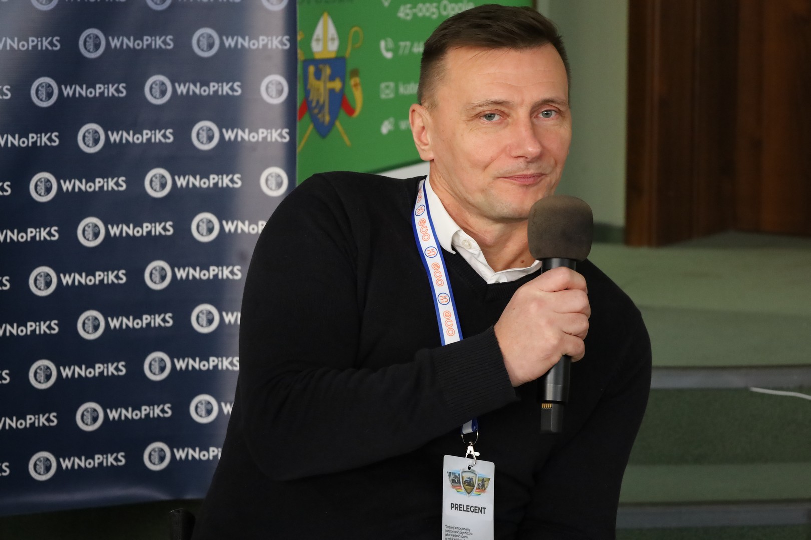 Ks. dr hab. Dariusz Krok (Katedra Psychologii Zdrowia i Jakości Życia UO) w wykładzie „Pozytywne emocje jako klucz budowania odporności psychicznej w aktywności sportowej” m.in. na przykładzie piłkarza Roberta Lewandowskiego przedstawił obraz sportowca z perspektywy emocji.