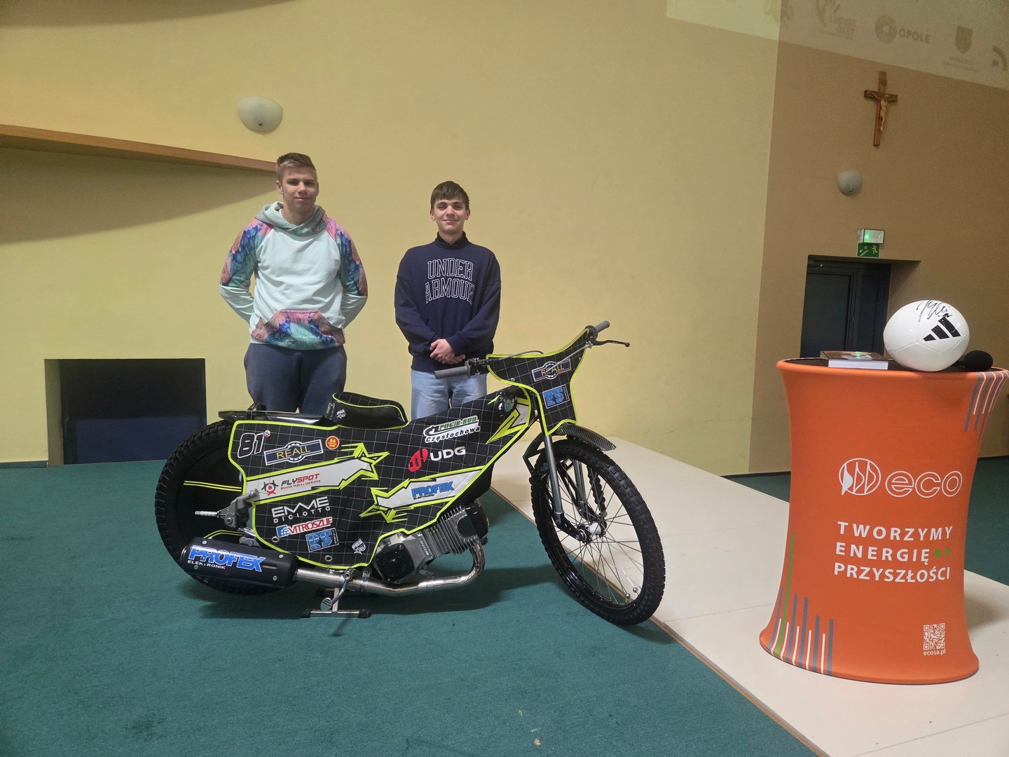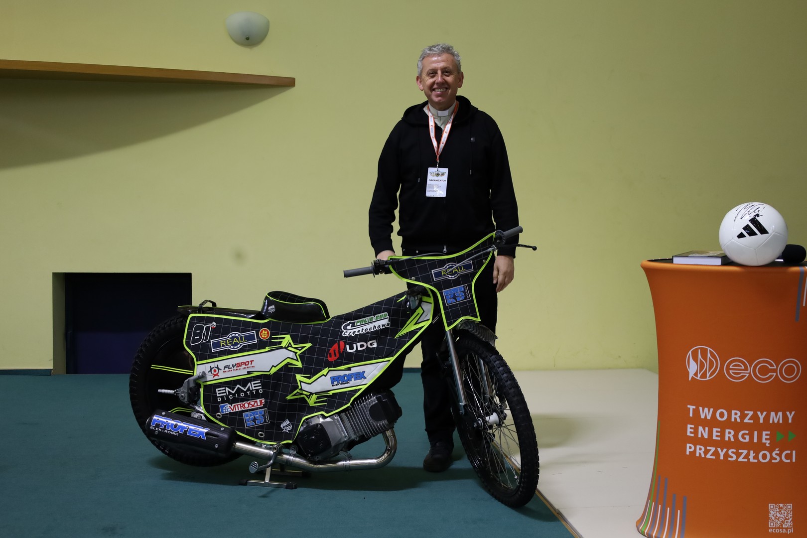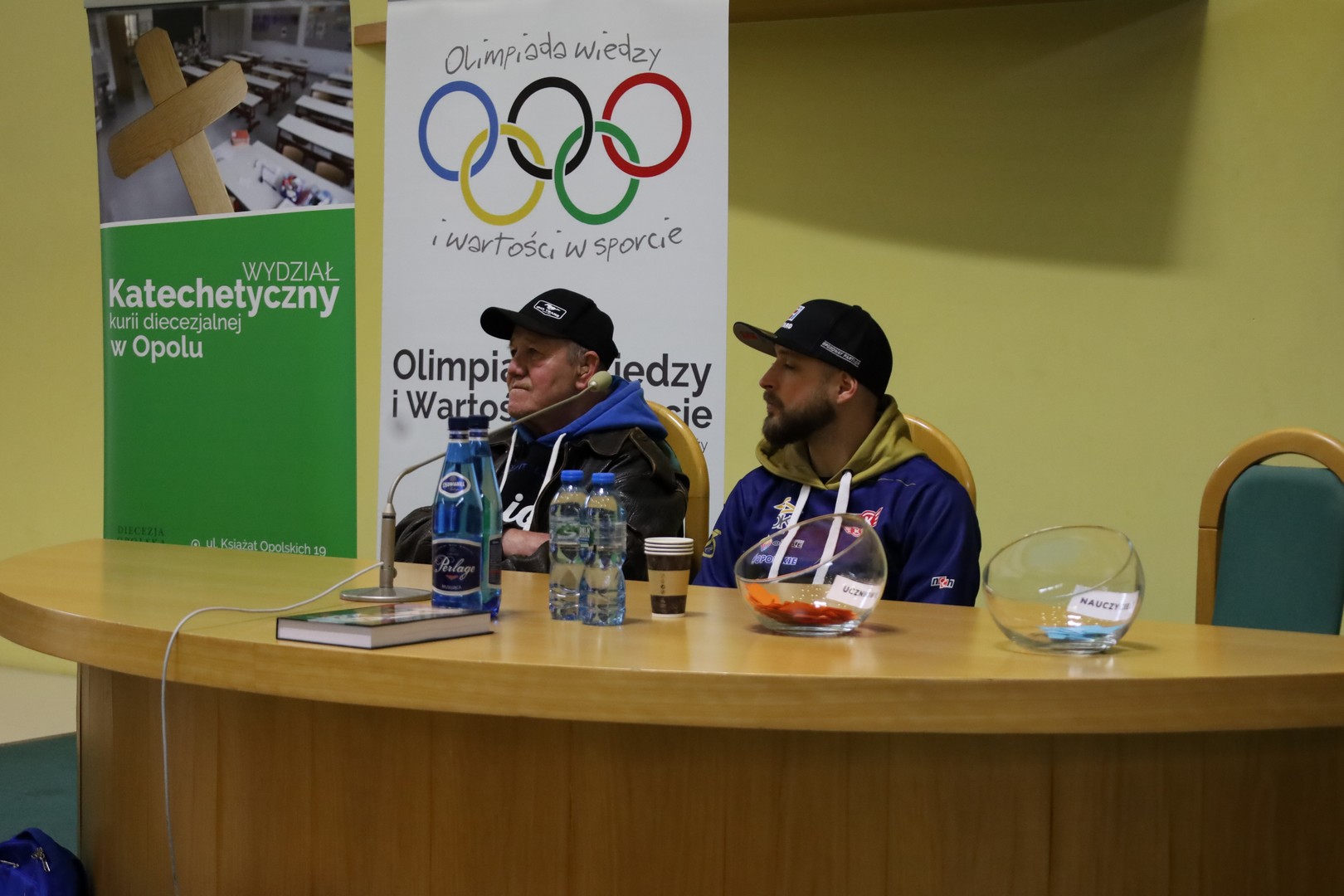 Pierwsza część finału polegała na rozwiązaniu wymagającego testu wiedzy, który sprawdzał znajomość historii sportu, jego wartości, zasad fair play, a także życia i duchowego przesłania świętych patronów młodzieży i sportowców. Pytania dotyczyły również inspirujących postaci sportowych oraz refleksji papieży – w tym św. Jana Pawła II, Benedykta XVI czy papieża Franciszka – którzy wielokrotnie podkreślali wychowawczą, społeczną i duchową rolę sportu. Po części konkursowej uczestnicy wzięli udział w spotkaniu z wyjątkowymi gośćmi – żużlowcami Wojciechem Załuskim i Oskarem Polisem. Wojciech Załuski, legenda Kolejarza Opole i wychowawca młodych zawodników, opowiadał o swojej karierze, pokonywaniu trudności oraz o tym, jak sport kształtuje wytrwałość i odpowiedzialność. Oskar Polis, mistrz Polski juniorów, dzielił się doświadczeniem młodego sportowca, dla którego pasja i samodyscyplina stały się drogą do sukcesów. Obaj goście podkreślali, że wartości obecne w sporcie – determinacja, szacunek, pokora i praca nad sobą – są równie ważne w codziennym życiu.