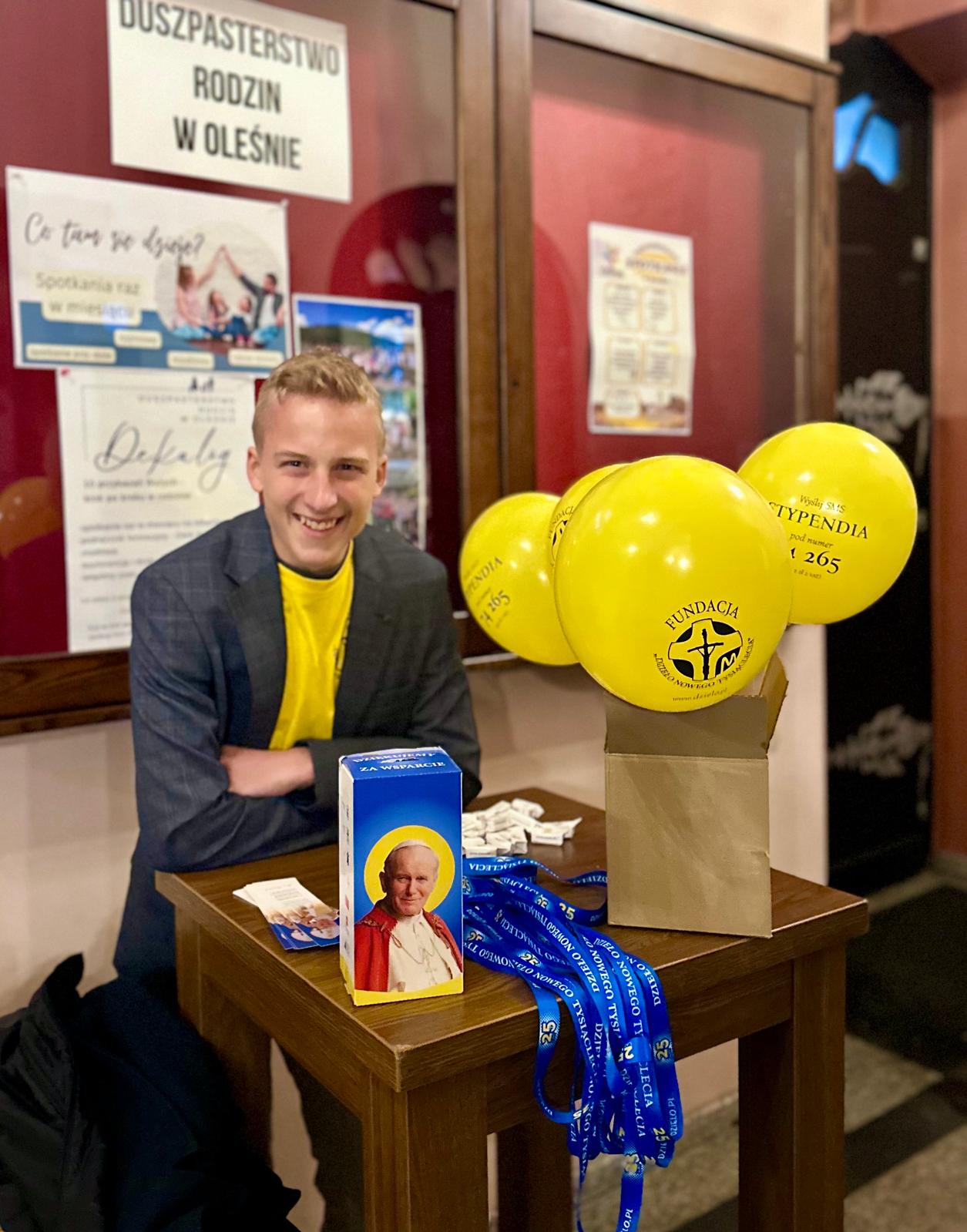 Stypendyści Fundacji „Dzieło Nowego Tysiąclecia”, ubrani w charakterystyczne żółte koszulki FDNT, aktywnie uczestniczyli w każdej Mszy świętej, czytając Słowo Boże, prowadząc modlitwę wiernych oraz włączając się w procesję z darami. Po zakończeniu Eucharystii kwestowali na rzecz swojej Fundacji, rozdając dzieciom m.in. baloniki, słodkie krówki i zakładki do książek z cytatami św. Jana Pawła II.