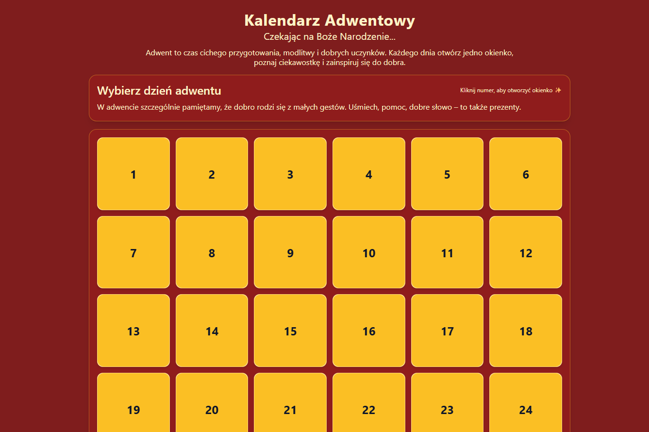 Kalendarz ma zachęcić uczniów, aby ten czas był nie tylko oczekiwaniem, lecz także okazją do wzrastania i refleksji. Dzięki prostym zadaniom każdy dzień Adwentu może stać się krokiem ku pięknemu przeżyciu świąt.