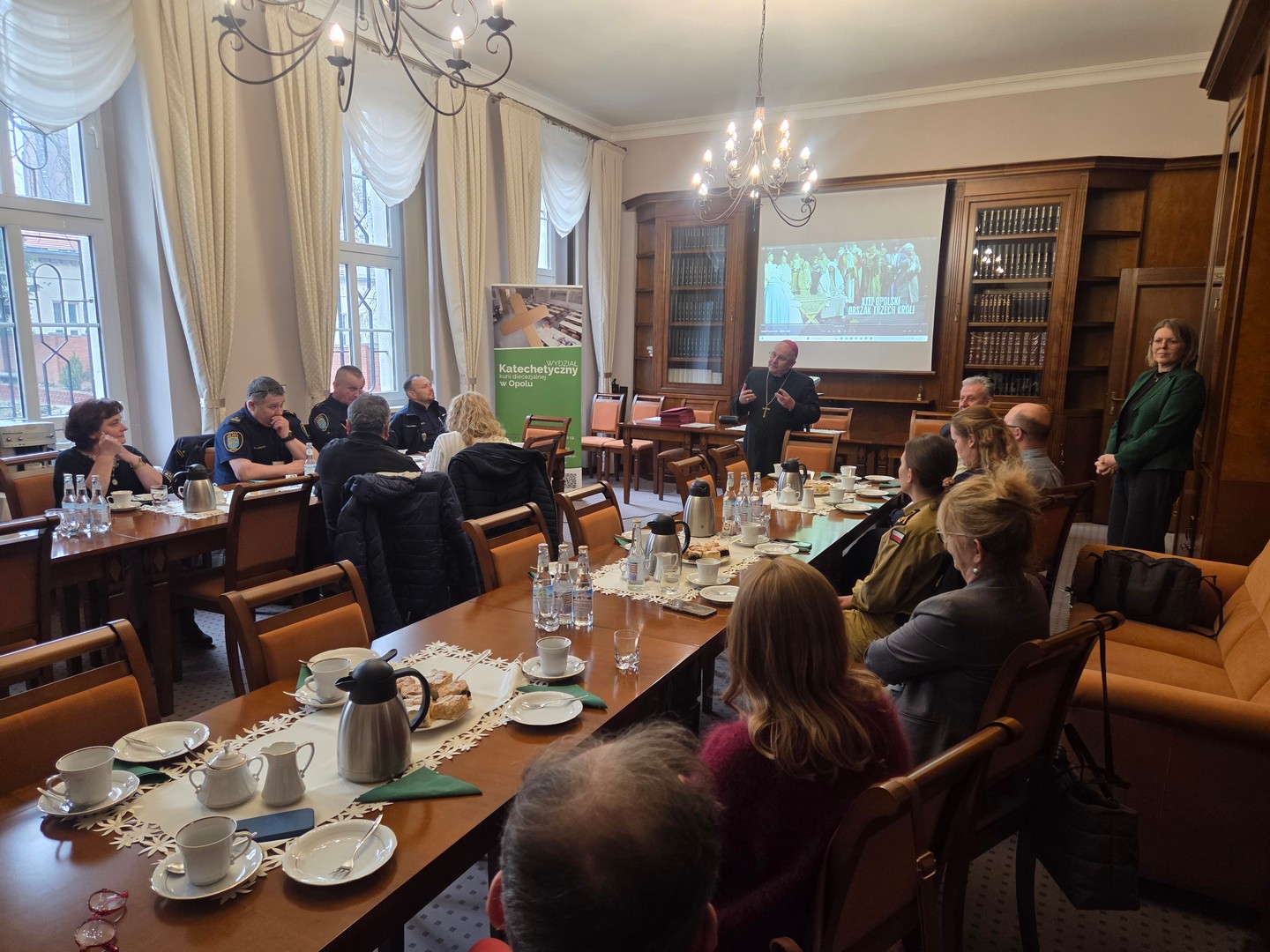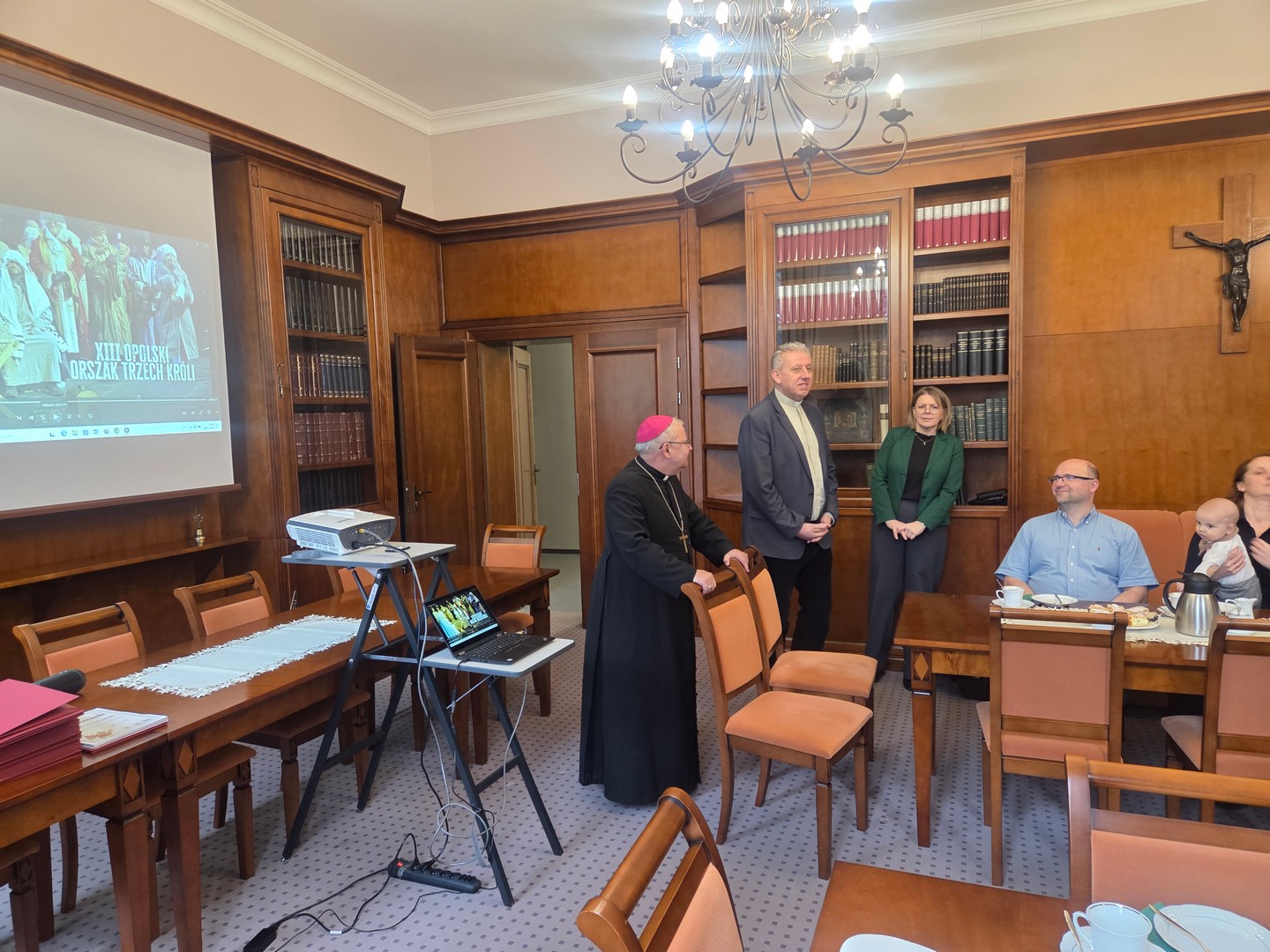 W piątek 23 stycznia 2026 r. w sali kapitulnej Kurii Diecezji Opolskiej odbyło się spotkanie podsumowujące 13. edycję Opolskiego Orszaku Trzech Króli. W spotkaniu zorganizowanym przez Wydział Katechetyczny Kurii Diecezji Opolskiej uczestniczyli przedstawiciele środowisk i instytucji zaangażowanych w przygotowanie tegorocznego Orszaku: przedstawiciele Diecezji Opolskiej z ks. biskupem Rudolfem Pierskałą na czele, Urzędu Miasta Opola, reprezentanci Młodzieżowego Domu Kultury w Opolu wraz z dyrekcją oraz instruktorami, funkcjonariusze Policji, Państwowej Straży Pożarnej, Ochotniczej Straży Pożarnej, Straży Miejskiej, ZHR, Miejskiego Zarządu Dróg, MZK, artyście wcielający się w trzech króli i Świętą Rodzinę. Obecni byli również przedstawiciele szkół i wolontariuszy.