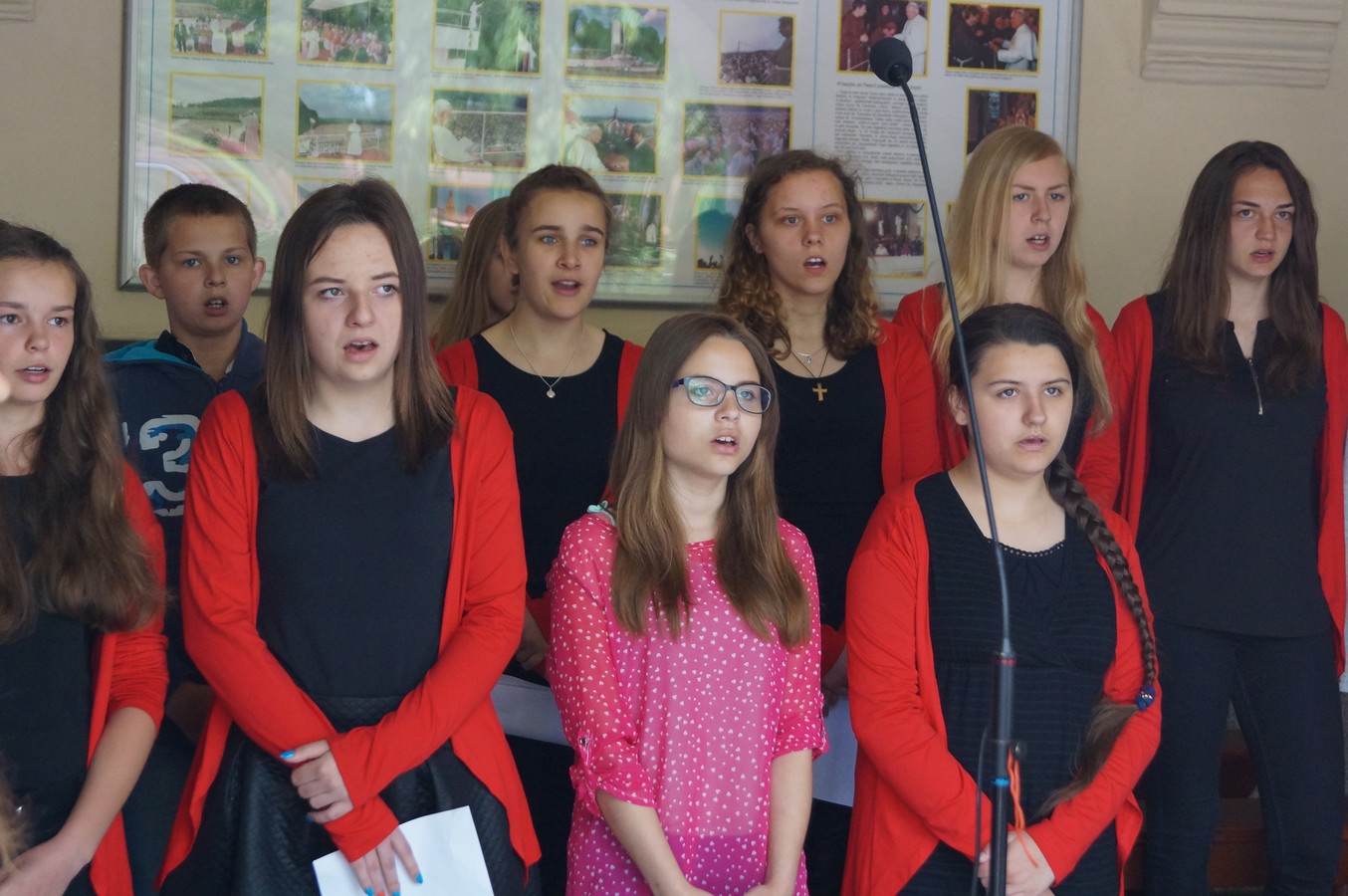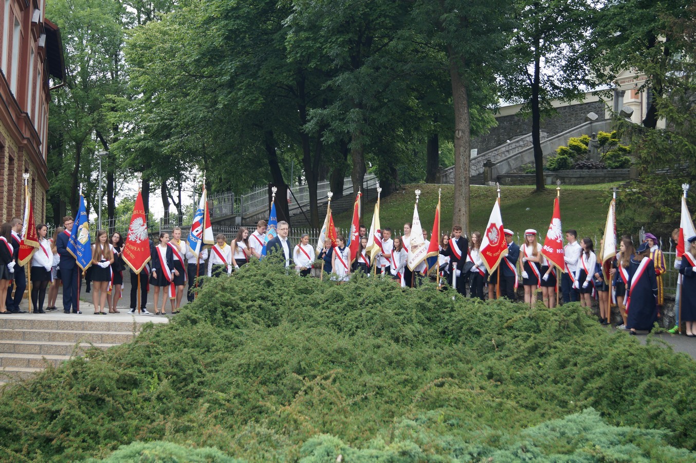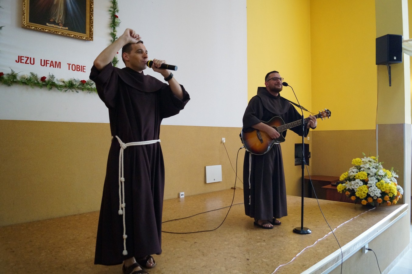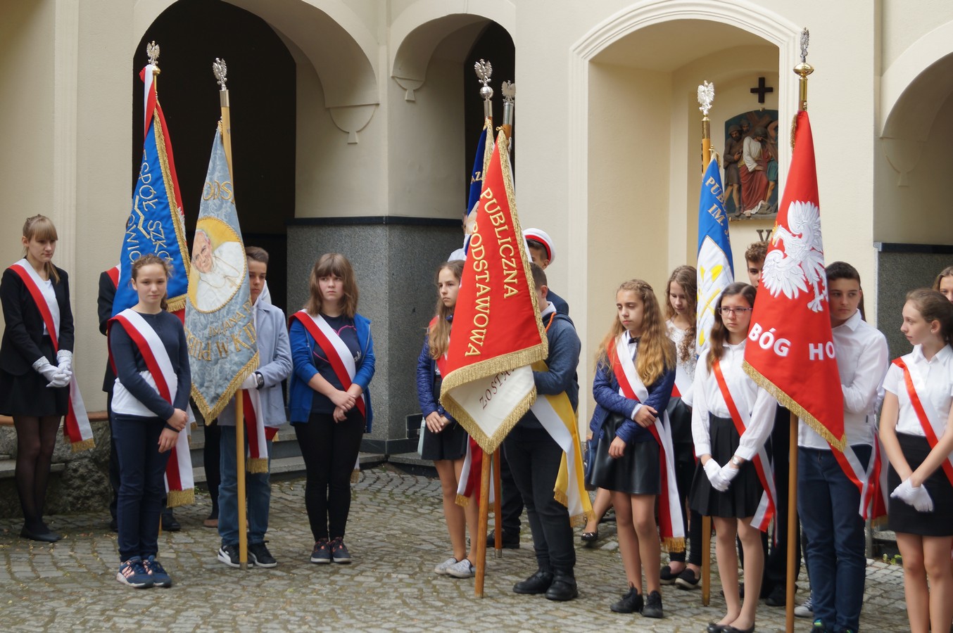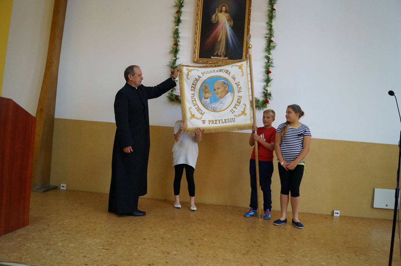 Po krótkiej przerwie, w Domu Pielgrzyma miała miejsce część artystyczna przygotowana Ojców Franciszkanów. Na zakończenie swój sztandar zaprezentowała najmłodsza szkoła, która nosi imię Jana Pawła II - Publiczna Szkoła Podstawowa im. Jana Pawła II w Przylesiu.
