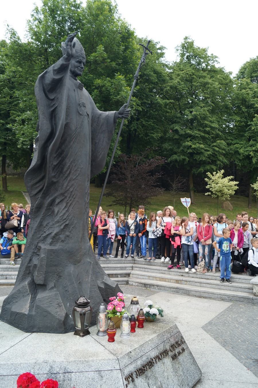 Po mszy św. uczestnicy pielgrzymki przeszli pod pomnik św. Jana Pawła II, gdzie ks. Biskup odmówił modlitwę w intencji zbliżających się Światowych Dni Młodzieży w Krakowie.