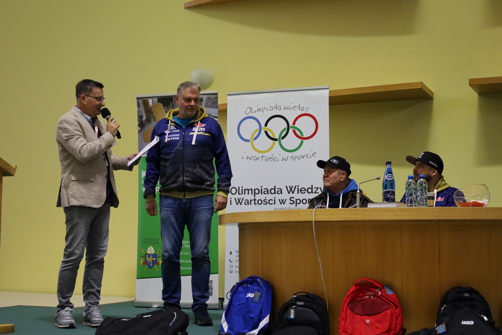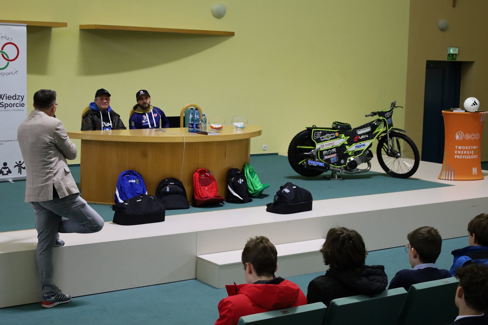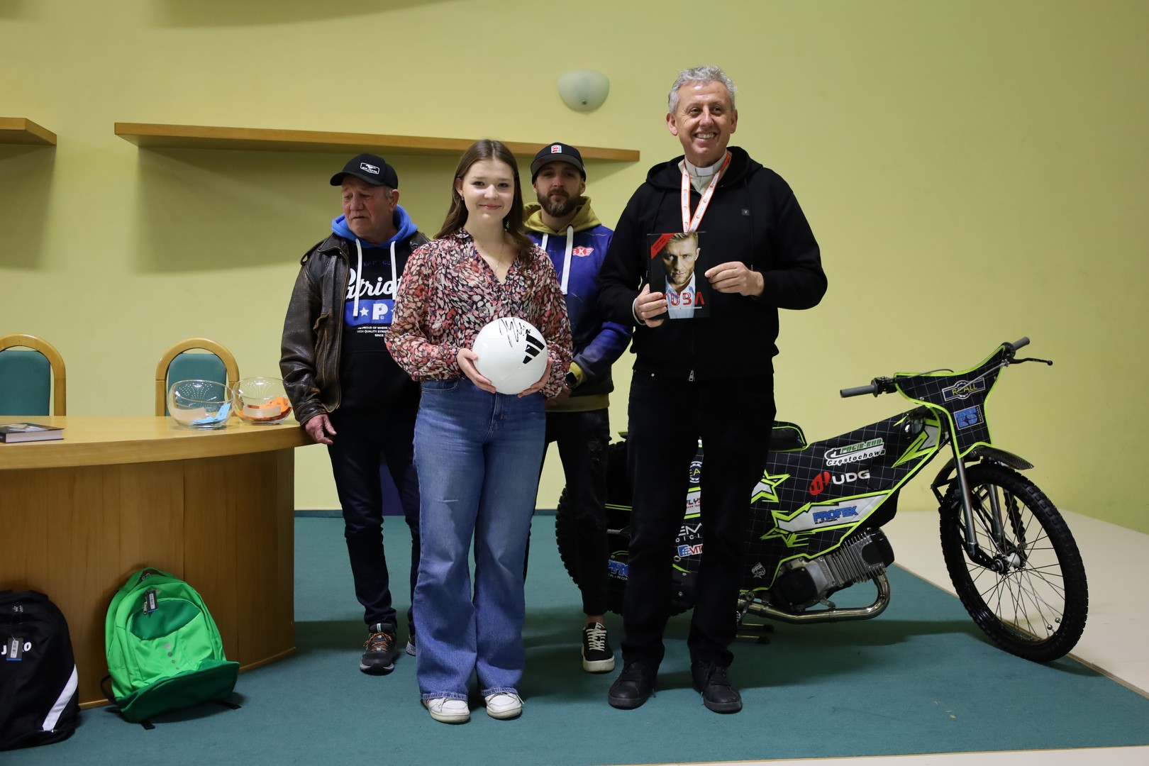 Pierwsza część finału polegała na rozwiązaniu wymagającego testu wiedzy, który sprawdzał znajomość historii sportu, jego wartości, zasad fair play, a także życia i duchowego przesłania świętych patronów młodzieży i sportowców. Pytania dotyczyły również inspirujących postaci sportowych oraz refleksji papieży – w tym św. Jana Pawła II, Benedykta XVI czy papieża Franciszka – którzy wielokrotnie podkreślali wychowawczą, społeczną i duchową rolę sportu. Po części konkursowej uczestnicy wzięli udział w spotkaniu z wyjątkowymi gośćmi – żużlowcami Wojciechem Załuskim i Oskarem Polisem. Wojciech Załuski, legenda Kolejarza Opole i wychowawca młodych zawodników, opowiadał o swojej karierze, pokonywaniu trudności oraz o tym, jak sport kształtuje wytrwałość i odpowiedzialność. Oskar Polis, mistrz Polski juniorów, dzielił się doświadczeniem młodego sportowca, dla którego pasja i samodyscyplina stały się drogą do sukcesów. Obaj goście podkreślali, że wartości obecne w sporcie – determinacja, szacunek, pokora i praca nad sobą – są równie ważne w codziennym życiu.